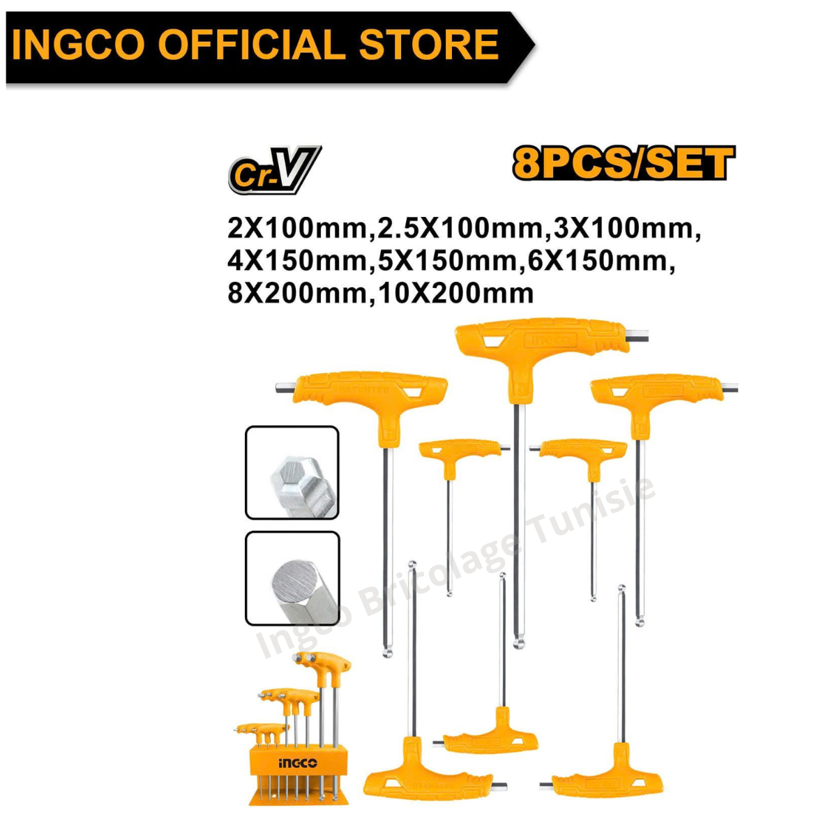 Jeu de 8 clés hexagonales à poignée en T et à pointe sphérique HHKT80828