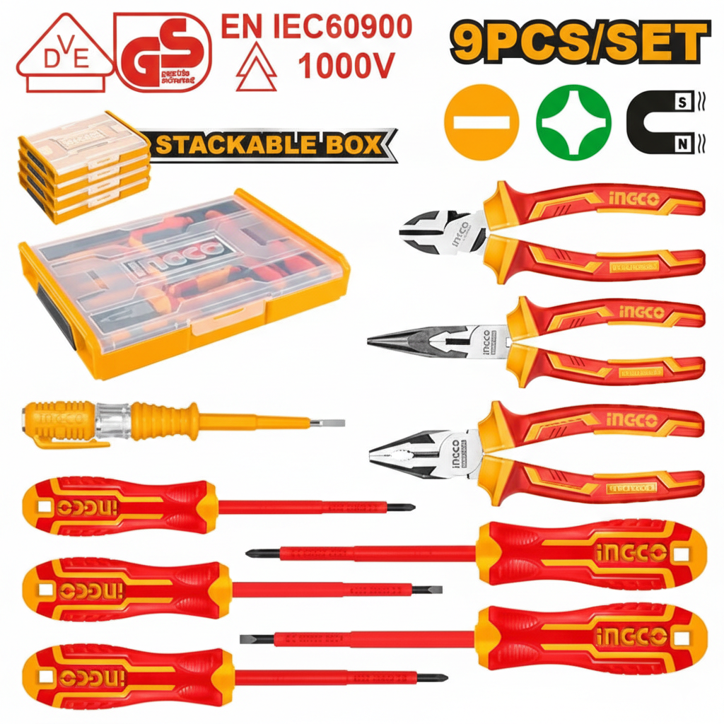 Ensemble de 9 outils à main isolés INGCO HKTV01H091