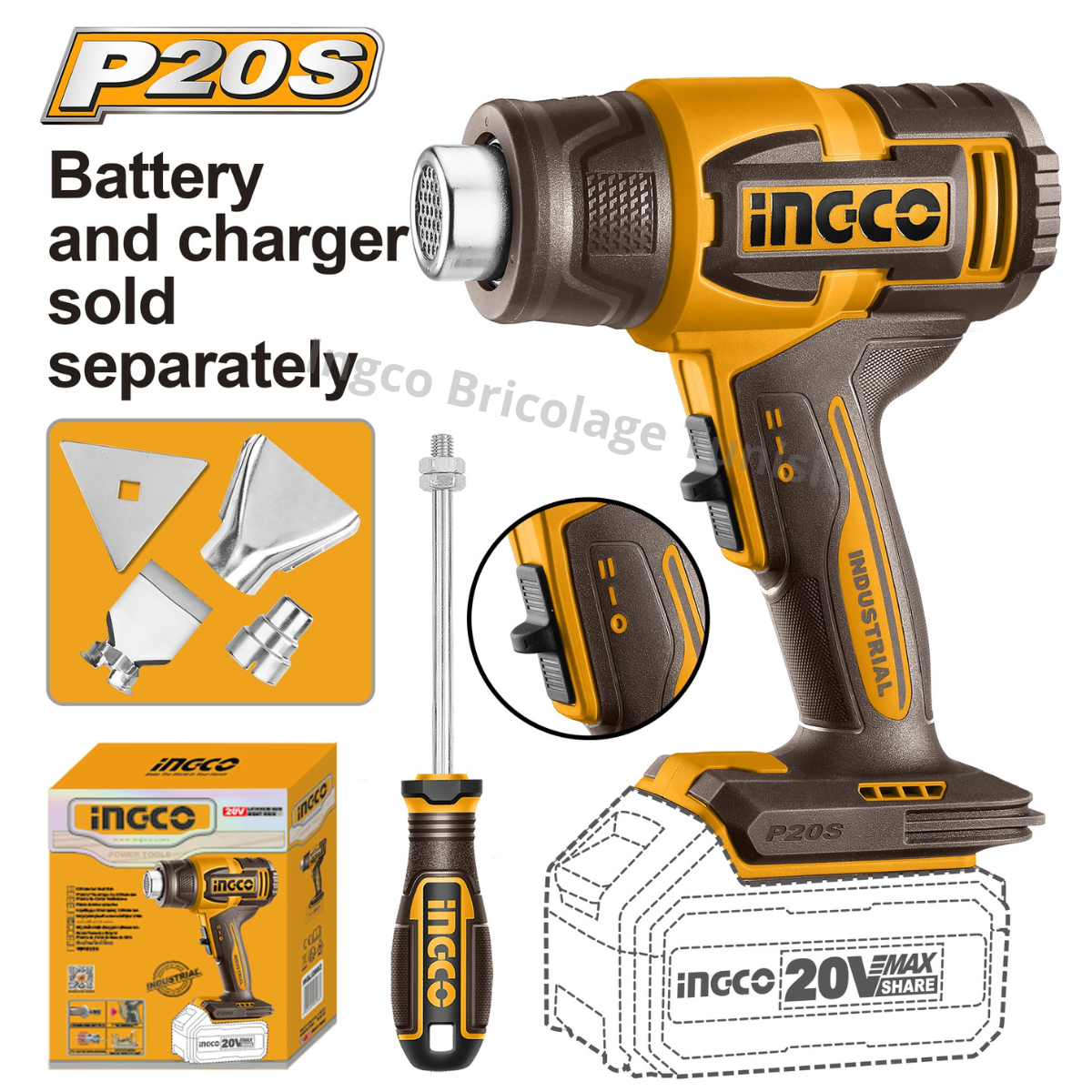 Pistolet thermique sans fil INGCO : sans batterie, sans chargeur HGLI2006