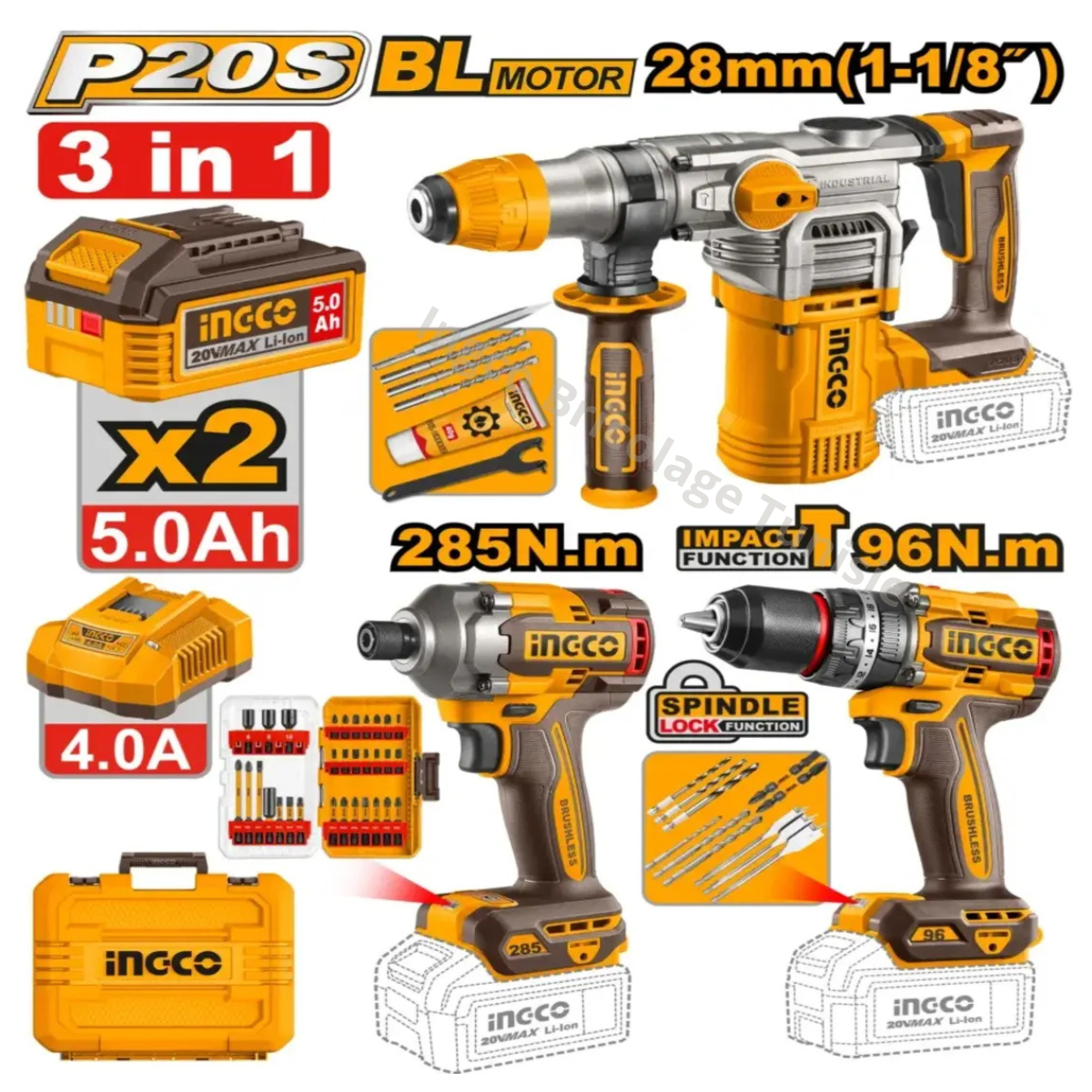 KIT 5 PIÈCES SANS FIL INGCO CKLI2059
