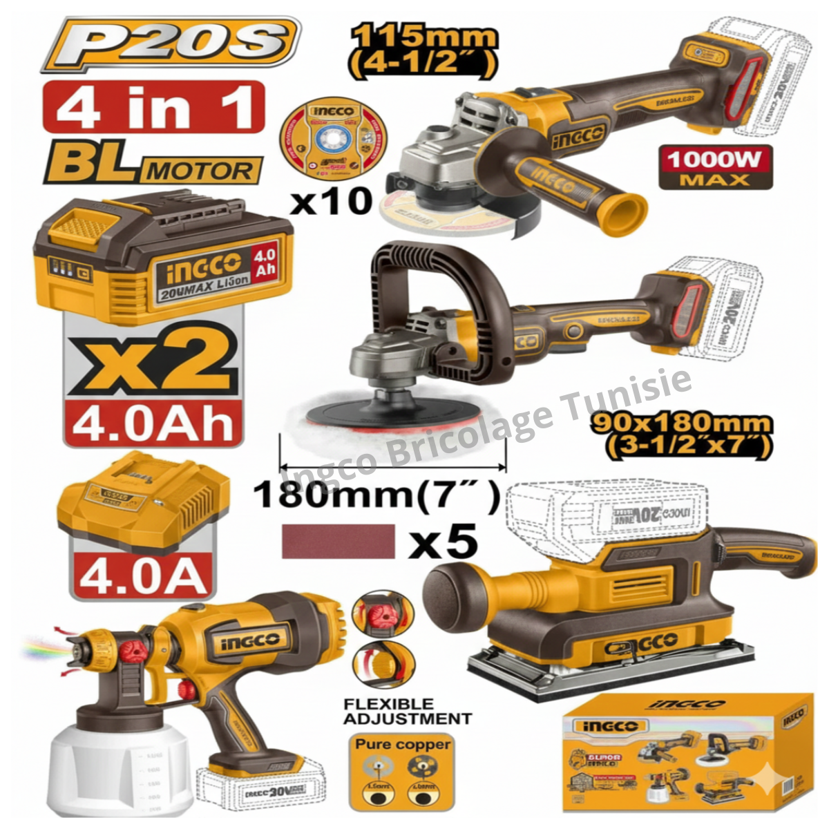 Ensemble de 4 outils sans fil INDUSTRIELS INGCO COSLI250696