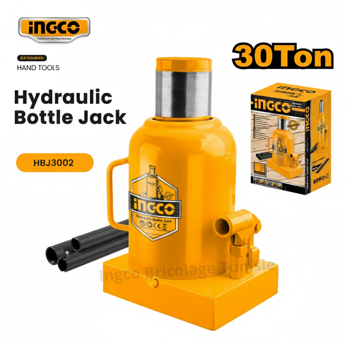 Cric bouteille hydraulique 30 tonnes HBJ3002